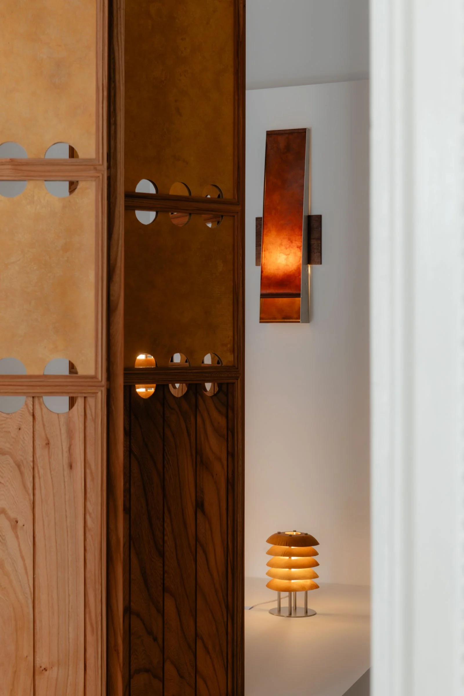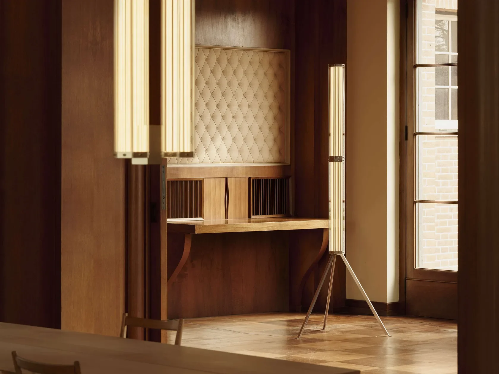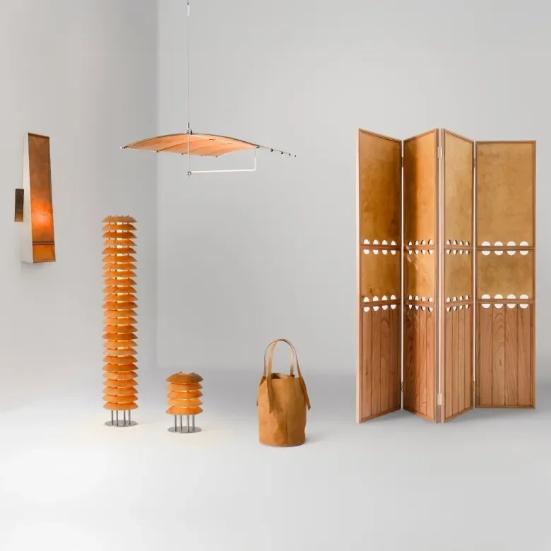 Lors de la conférence “Tendance : Sensibility” animée par Peclers Paris, les mots font écho à cette harmonie. On y évoque la nécessité de retrouver la matérialité comme point d’ancrage dans un monde saturé. L’idée d’un paysage urbain sensoriel s’impose alors, une manière de redonner vie à ce que le regard n’interroge plus. La matière et la couleur deviennent ainsi des vecteurs, définissant les contours du sensible et d’un nouvel art de vivre. Une réflexion qui s’illustre dans le palmarès du Prix FORMÆ, où l’innovation par la matière s’exprime à travers quatre projets. Dans la catégorie Savoir-Faire, Ateliers SP est récompensé pour son travail autour de la marqueterie. Un savoir qu’ils explorent notamment aux côtés de la designer Marianne Barrier, spécialisée dans le travail de la paille de seigle et de la poésie d’excellence. MycoWorks, récompensé dans la catégorie Industrie, développe des biomatériaux à base de mycélium. Entre recherche et sensorialité, et en collaboration avec le OEO Studio, le laboratoire signe la série Reishi, inspirée du design scandinave. GWILEN, lauréat dans la catégorie Manufacture, transforme les sédiments marins en un matériau solide et sensé. Enfin, Flos, distingué dans la catégorie Design, présente SuperWire, une collection qui réinvente l’esprit des lanternes traditionnelles à travers une approche contemporaine de la lumière.